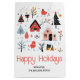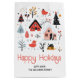 Skandinavische Volkskunst Winterlandschaft Weihnachtsgeschenk Tasche. Es bietet eine Winterlandschaft mit Häusern, Bäumen und Tieren und den Text "Happy Holidays".