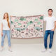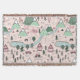 Whimsikskandinavisches Muster zeigt das landwirtschaftliche Leben zwischen Bergen, Seen und Bächen mit Tieren, Bäumen, Häusern, Fahrzeugen... sogar einem Heißluftballon und Windturbinen - alles auf einem pastellrosa Hintergrund.