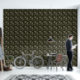 Schöne skandinavische Stiltapete mit böhmischen Dekorationsmustern, in natürlichen Farben grün und beige auf schwarzem Hintergrund. Sie können den Hintergrund an die Anzüge Ihrer Einrichtung anpassen und ändern.