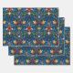 Skandinavisches Folklore Art Blue Red Floral Muste Geschenkpapier Set
