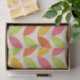 Es handelt sich um Minimalistische geometrische Blätter in Orange, Rosa, Grün und Gelb.