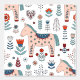 Dieses Volkskunst-Design zeichnet sich durch ein skandinavisches Muster aus, mit niedlichen Pferden unter Herzen und Blume.
