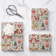 Skandinavisches rotes und grünes Weihnachtsmuster Geschenkpapier Set