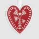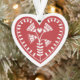 Skandinavisches rotes Herz auf einem Acrylschmuck.