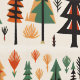 Volkskunstmalerei mit Weihnachtsbäumen, Formen in kühnen Farben. skandinavischer Stil