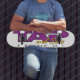 STECHEN Sie und das Logo des Sohns auf Skatebrett an.