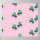 Rosa Retro Vintag Roller Skate Nahtlose Wiederholung Muster mit rosa Hintergrund. Die Retro-Vibes mit einem rosa Roller-Skate-Muster wiederbeleben. Die Jahre bis in den 80er und die 90er Jahre mit einer Rolle Skate-Muster, die den Geist des Retro cool widerspiegelt. Muster, Illustration, Dekoration, Sommer, Vintag, Musik, Fitness, Kind, Retro, Sport, kreativ, nahtlos, niedlich, Hipster, Doodle, Stoff, rosa, farbenfroh, unterhaltsam, radio