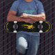 Ein gelbes Bild eines jungen Skateboarders, der auf einem Board einen Trick macht, vermutlich erfolglos ein gelber Vorlagentext "Skate Hard or Go Zuhause" und ein Vorlagenname. Schwarzer Hintergrund. Personalisierbar. Sie können das Bild ändern und zwei Vorlagentexte unabhängig voneinander ändern oder löschen. Um den Hintergrund, die Farbe und die Position des Schriftartes zu ändern, verwenden Sie bitte den Link "Design bearbeiten" oder "Weitere Anpassungen vornehmen" unter "Diese Vorlage personalisieren". Elegantes Skateboard für Ihre Outdoor-Aktivitäten.
