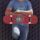 King Skull mit Kronen und gefederten Flügeln ist Set auf einem roten Hintergrund mit SKATE KING Text.