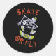 Skate oder Fly Skeleton Skateboarder Runder Aufkleber