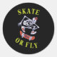 Skate oder Fly Skeleton Skateboarder Runder Aufkleber