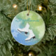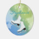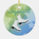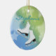 Eis Skate Ornament mit einem Paar Skate aus weißem Eis auf einem limiengrünen und aqua-blauen Sternenhimmel. Alle Texte individuell anpassbar, vorne und hinten!