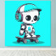 Ein spielerischer Mix aus eigenartiger Charme und coolem Ambiente mit einem anmutigen Roboter, der mit Sicherheit Skaten.
