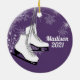 Eis-Skater werden dieses wunderschöne Foto mit Schneeflocken Liebe geben. Vintager Skate aus weißem Eis hängt von ihren Schnürsenkeln an diesem hübschen Ornament in Pflaume und Weiß mit Farbvarianten, um Ihre Bedürfnisse und ein beliebtes Foto Anzug. Name und Jahr bearbeiten oder Text für Wettbewerbe und Vorführungen hinzufügen, oder es ist vielleicht die erste Skaten eines Kindes,