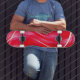 Dieses hochwertige Skateboard wird mit einem abstrakten Kunstmuster in Rot- und Rosatönen gezeigt. Kaufen Sie, wie es ist oder anpassen Sie dieses Objekt nach Ihren Wünschen. Börsenbild 123freevectors.com