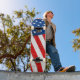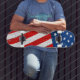 Skateboard in einem patriotischen USA Flag Grafik gedruckt. Kaufen Sie, wie es ist oder anpassen Sie dieses Objekt nach Ihren Wünschen. Bild