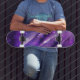 Dieses qualitativ hochwertige Skateboard wird mit einem abstrakten Kunstmuster-Druck in lila Multi-Farben gezeigt. Kaufen Sie, wie es ist oder anpassen Sie dieses Objekt nach Ihren Wünschen. Börsenbild 123freevectors.com