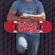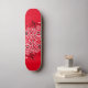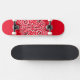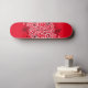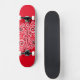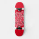 Skateboard in roter Farbe mit einem kunstvoll schwarz-weißem, wirbelfarbenen grafischen Druck. Kaufen Sie, wie es ist oder anpassen Sie dieses Objekt nach Ihren Wünschen.
