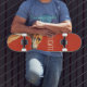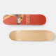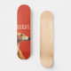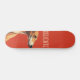 Dies ist ein minimalistisches Skateboard-Design mit einer braunen Windhund-Abbildung vor lebendigem rotem Hintergrund und einem anpassbaren Text "delicate".