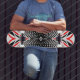 Nutzen Sie den Tag mit diesem dynamischen Vektor op Art Design. Es bietet stilisierte grafische Lotus-Blätter und kurvilineare Streifen in einem roten, weißen und schwarzen Farbschema. Eine vollständig bearbeitbare Vorlage.