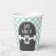 Retro blaue Karo Skateboard Lass uns es Geburtstagsparty Cups kick.