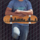 Skateboard Deck mit orangefarbenem Portland Skyline