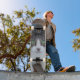 Skateboard Gato gris y blanco observando