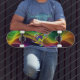 Dieses farbenfrohe Skateboard wird im Park ihre Aufmerksamkeit erlangen.