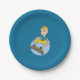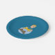 Design mit Illustration eines niedlichen blonden Jungen Skateboarders, der mit seinem Skateboard in der Luft springt; Extrem sportlicher Cartoon für Kinder auf blauem Hintergrund
