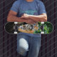 La patineta presenta un diseño inspirado en un poderoso cazador, específicamente un tigre de Bengala. La patineta tiene ilustraciones, gráficos y colores que representan la imagen de un tigre de Bengala, un felino majestuoso y feroz. La elección de este diseño evoca la fuerza, la agilidad y la belleza asociadas con los tigres, lo que proporciona un aspecto visualmente impactante y emocionante a la patineta. Este tipo de diseño no solo contribuiría a la estética de la patineta, sino que también despierta la imaginación y el interés de quienes la utilicen, agregando un elemento temático y distintivo al objeto.