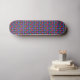 Dieses glänzende Diamantenskateboard hat ein abstraktes Muster mit roten, hellblauen und dunkelblauen Diamanten. Jede Zeile wird durch eine Reihe schwarzer Diamanten getrennt. Jeder der schwarzen Diamanten hat ein Loch in der Mitte. Das obere links von jedem Single Diamant sieht aus, als ob es glänzend ist. Dies ist ein brilliantes und qualitativ hochwertiges Board, das alle Ihre neuesten Züge sehr cool aussehen lässt.