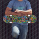 Schlagen Sie den Asphalt mit dem stilvollen Skateboard.