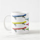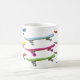 Eine e-ähnlich Tasse der Popkunst, die eine Sammlung Skateboards in den verschiedenen Farben zeigt. Dieser Entwurf kann auf irgendeiner Art oder Art Tasse in der Strecke bestellt werden