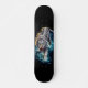 La patineta tiene un diseño particular que representa la imagen de un tigre agresivo. Este diseño tiene un enfoque especial en la representación del tigre en un entorno nocturno y acuático. La combinación de elementos como la agresividad del tigre, la oscuridad de la noche y la presencia del agua sugiere una imagen visual llamativa y quizás misteriosa. La patineta, con su diseño único, visualmente impactante, expresa una fusión de elementos naturales y salvajes.