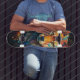 Skateboard con el diseño de un zorro territorial que combina astucia con una postura firme y vigilante en un objeto deportivo, además, de combinar estilo y energía salvaje, ideal para quienes buscan destacar tanto en la pista como en las calles. El diseño presenta un zorro en su pelaje anaranjado que brilla con otro tono azul cálido y natural, mientras que sus ojos son de un amarillo intenso.