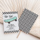 Skateboard Zwei Krasse 2. Geburtstag laden mit schwarzem Karo und blauem Skateboard ein.