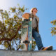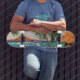 Skateboarding erinnert eine Person, dass sie in den Tropen mit einer coolen Skateboardplattform sind