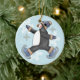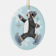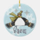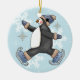 Weiche Schneeflocken auf einem zweiseitigen Pinguin-Porzellanschmuck mit Pinguinen in Eis-Skaten! Dieser Sake-Skaten Pinguin-Urlaubsornament ist ein perfektes Geschenk für alle, die Winter, Pinguine und Eis Skaten Lieben!