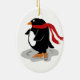 Ein Pinguin mit einer langen Skaten mit rotem Schal auf einem Sake-Ornament, das ein tolles Geschenk für jeden ist, der Skaten und Pinguine Lieben!