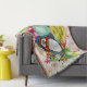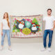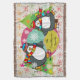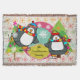 Die schöne Weihnachtsdecke mit zwei bezaubernden Pinguinen in eisgestreiften Skaten, gestreiften Schals, Winterhütten und verzierten Weihnachtsbäumen auf weißem Hintergrund mit verschiedenen Farbschneeflocken, einem rosafarbenen Bereich mit weißen Schneeflocken und einem Aquablau-Zentrum mit weißen Polka-Punkten. Sie können ganz einfach mit Ihrem Familiennamen personalisieren!