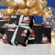 Hübsche, handgezeichnet Aquarellbilder von Skaten Santa mit Weihnachtsbaum und Geschenken für Sie und Ihre Familie