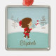 Datiertes u. personalisiertes niedliches brünettes Eis-Skater-Skaten Weihnachtsverzierungs-Set auf einem Schnee füllte Hintergrund mit Bäumen u. einem Snowman. Ein, um zu kommen jahrelang gehütet zu werden Wunder-Weihnachtsgeschenk sure.