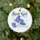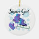 Unser Skater Girl Design T - Shirt, Tasse, Taschen, Karten, Kissen, Wanduhren, Halsbecher, Hoodies, und andere Skaten-Thema-Artikel bietet ein Paar blaue und lavender Skate und Fäustlinge auf einer Schnur umgeben von vielen winzigen Schneeflocken und Text, dass Skater Girl!