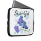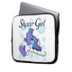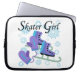 Unsere Skater-Mädchenentwurf T - Shirts, Tassen, Taschen, Karten, Kissen, Wanduhren, Andenken, Hoodies und andere Skatenthemaeinzelteile kennzeichnet ein Paar Blau- und Lavendel-Skate und Handschuhe auf einer Schnur, die durch Lose winterliche Schneeflocken und Text, der, umgeben wird Skater-Mädchen liest!