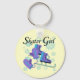 Unsere Skater-Mädchenentwurf T - Shirts, Tassen, Taschen, Karten, Kissen, Wanduhren, Andenken, Hoodies und andere Skatenthemaeinzelteile kennzeichnet ein Paar Blau- und Lavendel-Skate und Handschuhe auf einer Schnur, die durch Lose winterliche Schneeflocken und Text, der, umgeben wird Skater-Mädchen liest!