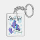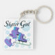 Unsere Skater-Mädchenentwurf T - Shirts, Tassen, Taschen, Karten, Kissen, Wanduhren, Andenken, Hoodies und andere Skatenthemaeinzelteile kennzeichnet ein Paar Blau- und Lavendel-Skate und Handschuhe auf einer Schnur, die durch Lose winterliche Schneeflocken und Text, der, umgeben wird Skater-Mädchen liest!