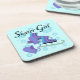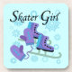Unsere Skater-Mädchenentwurf T - Shirts, Tassen, Taschen, Karten, Kissen, Wanduhren, Andenken, Hoodies und andere Skatenthemaeinzelteile kennzeichnet ein Paar Blau- und Lavendel-Skate und Handschuhe auf einer Schnur, die durch Lose winterliche Schneeflocken und Text, der, umgeben wird Skater-Mädchen liest!
