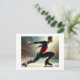 Ein dynamischer Skater in einem roten und schwarzen Outfit treibt mit hoher Geschwindigkeit und Fokus auf das Eis. Lebhafte Bewegungslinien und ein strahlender Hintergrund unterstreichen die Energie und Bewegung des Athleten.