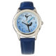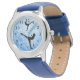 Kinderuhr aus Edelstahl mit blauem Lederarmband