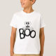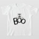 Ein Skelett und ein Text, der auf Skelett-Boo Halloween-T - Shirt "BOO", Trick- oder Lecktaschen, Karten, Aufkleber, Tasse, Magnete und anderen Halloween-Design-Bekleidung und Geschenke liest.